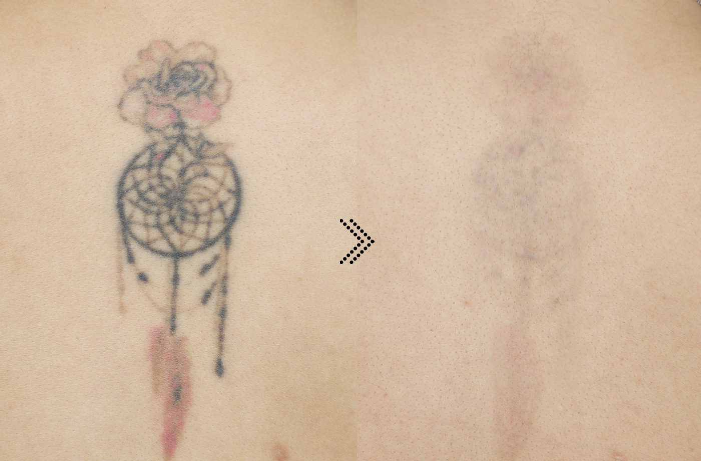 남은 문신 잔흔을 제거하는데 많은 횟수와 강한 레이저가 필요한 것이 아닙니다.